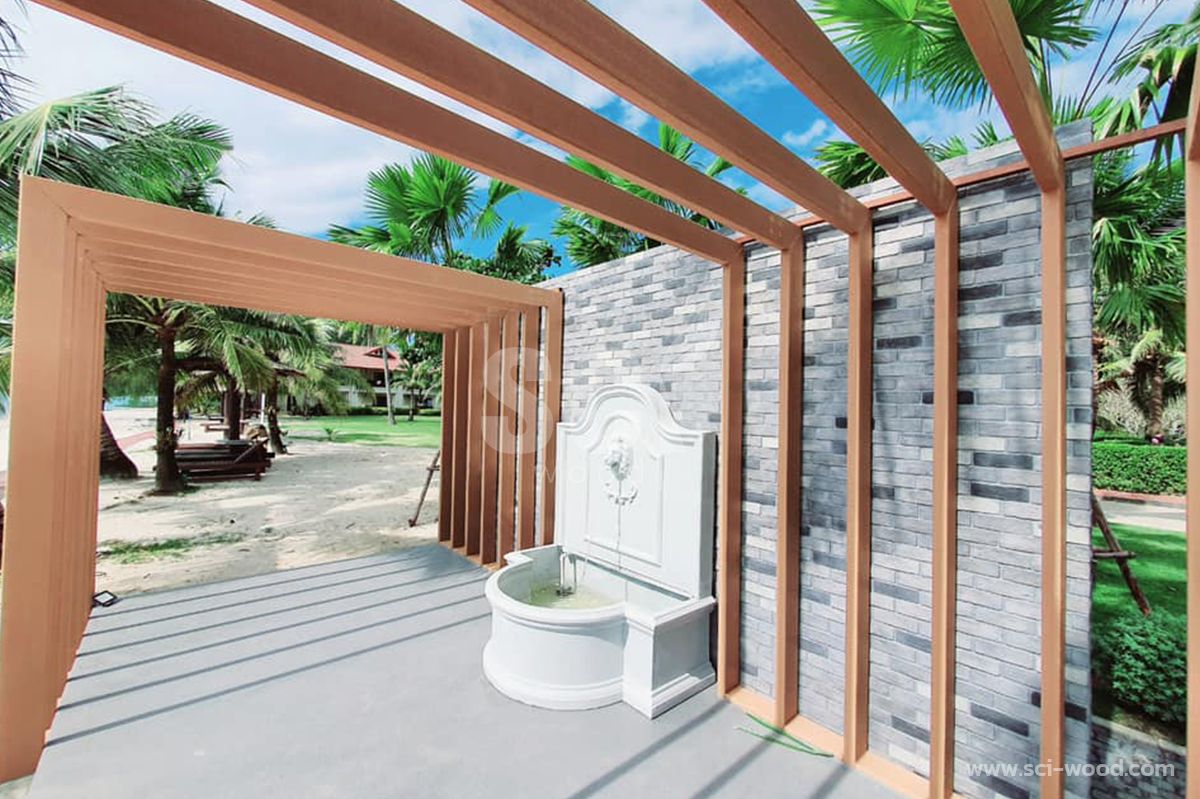ใช้ไม้ระแนงอลูมิเนียมกลวง SCi Wood รุ่น SML2-S6 ขนาด 51x151mm. 2.8 เมตร