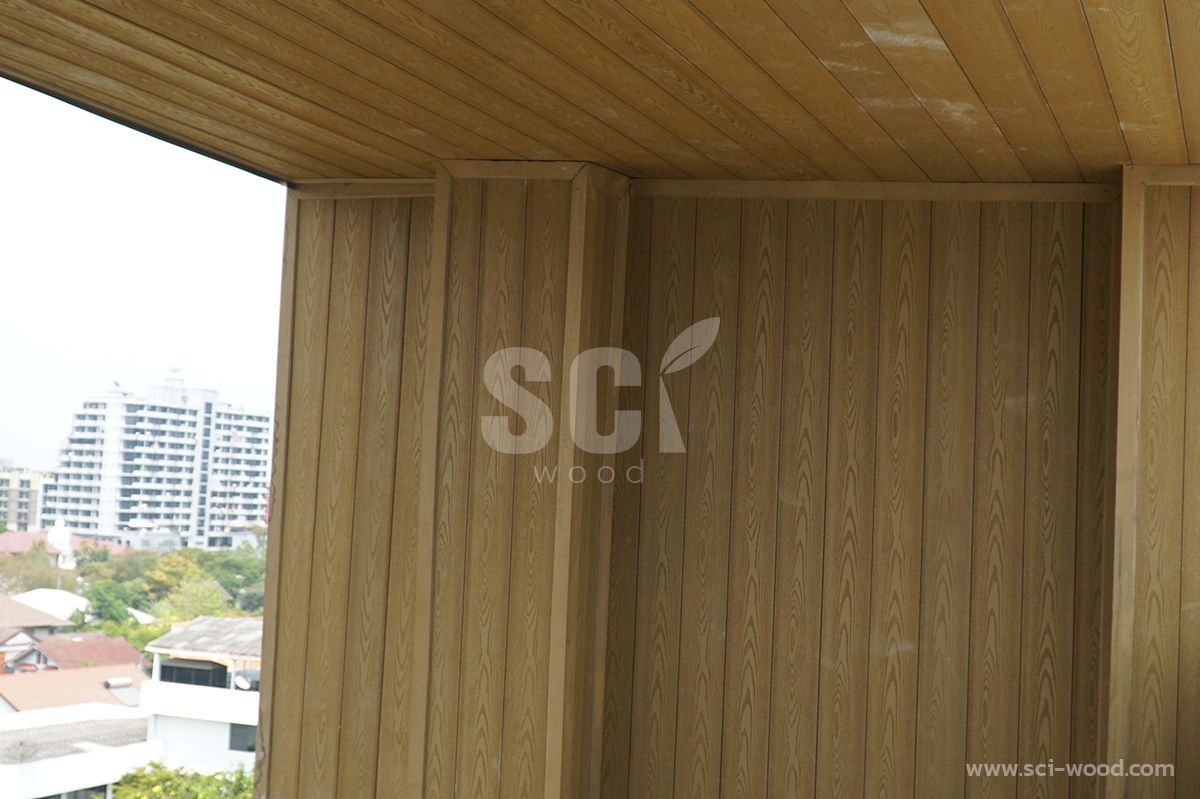 ใช้ไม้กรุผนังภายนอก Sci Wood รุ่น OWP-156 CN ขนาด 2.1 x 15.6 ซม. ยาว 280 ซม. / เส้น
